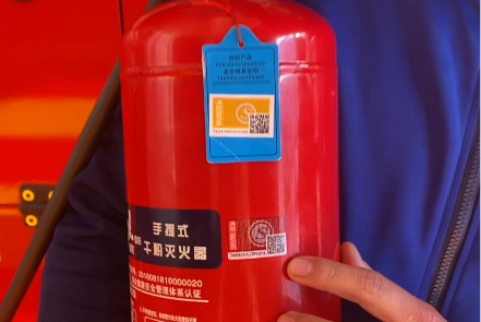 合格的灭火器身上有一红一黄两个带有S标志的二维码,相当于“身份证”,扫码即可查看产品信息、流向信息。